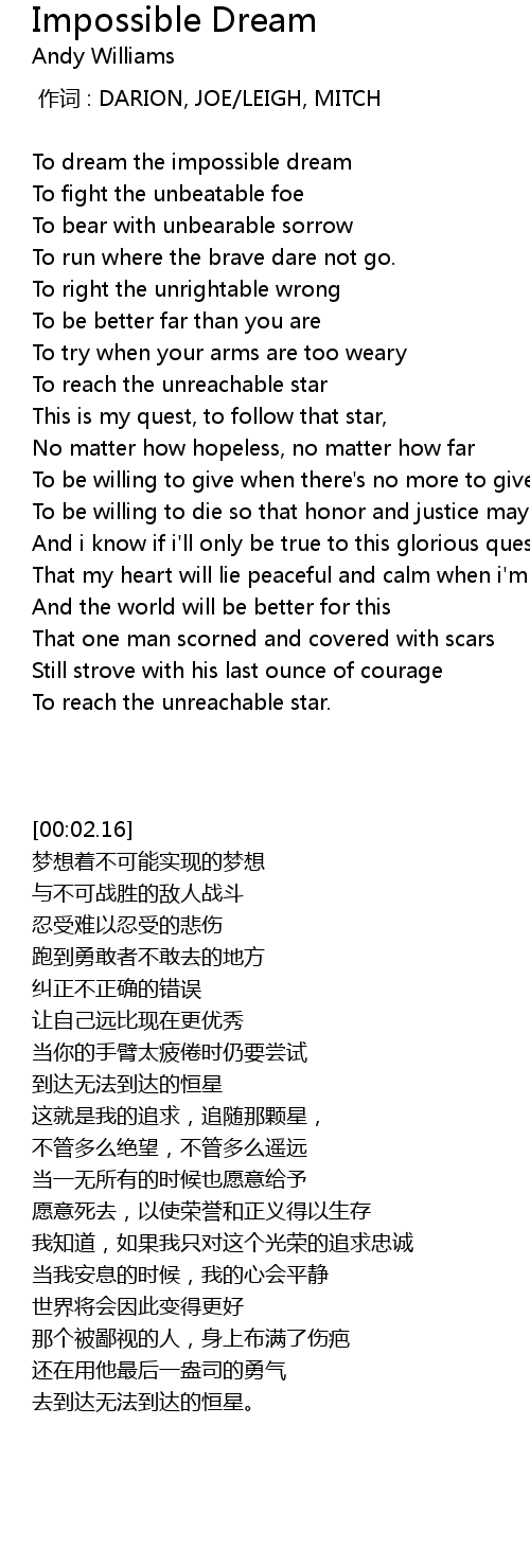 | [00:02.79] | To dream the impossible dream |