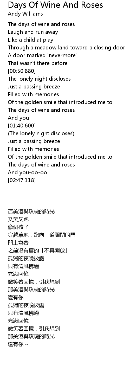 | [02:19.898] | 那美酒與玫瑰的時光 |