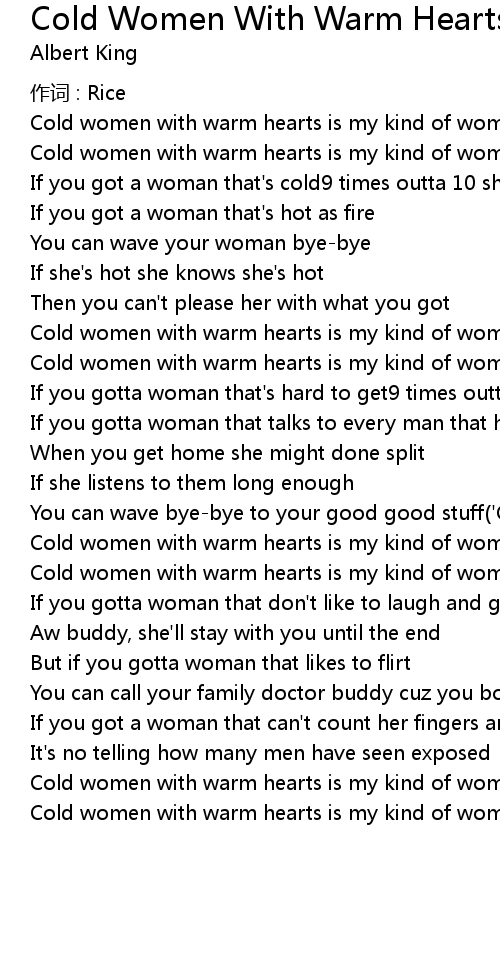 | 歌曲 | Cold Women With Warm Hearts |