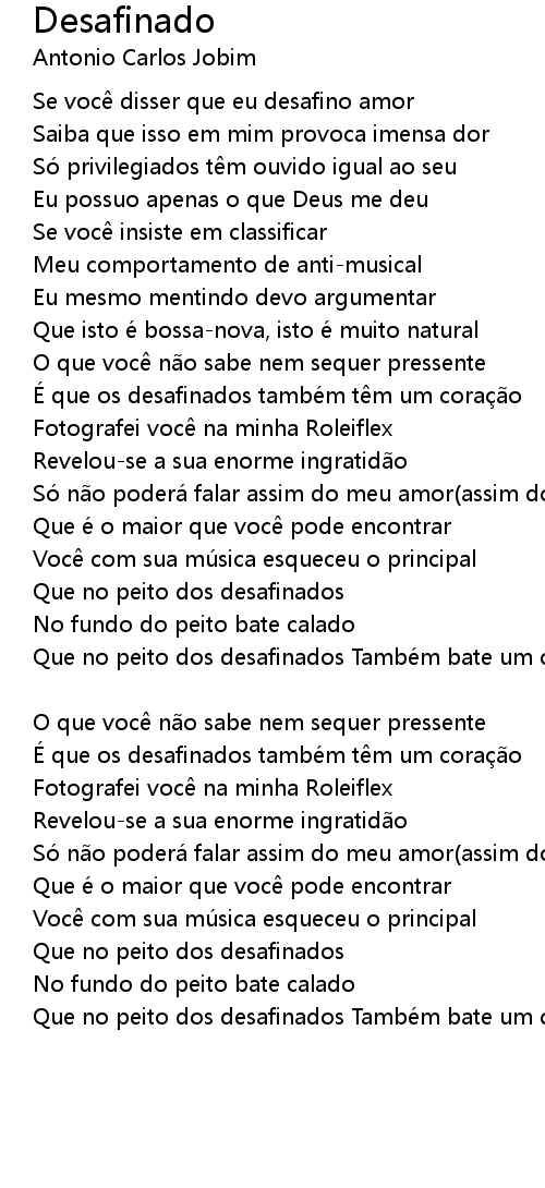 | Que no peito dos desafinados Tambe m bate um cora o | |