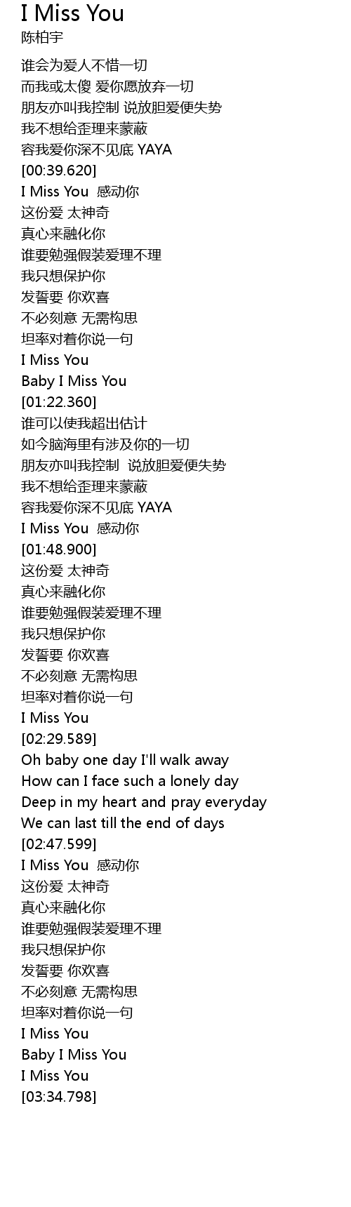 | [00:40.200] | I Miss You 感动你 |