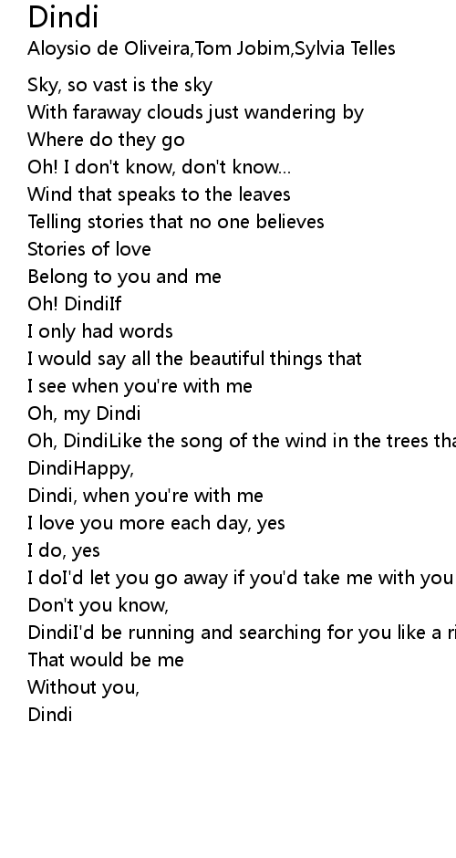 Oh, DindiLike the song of the wind in the trees that's how my heart is singing, |