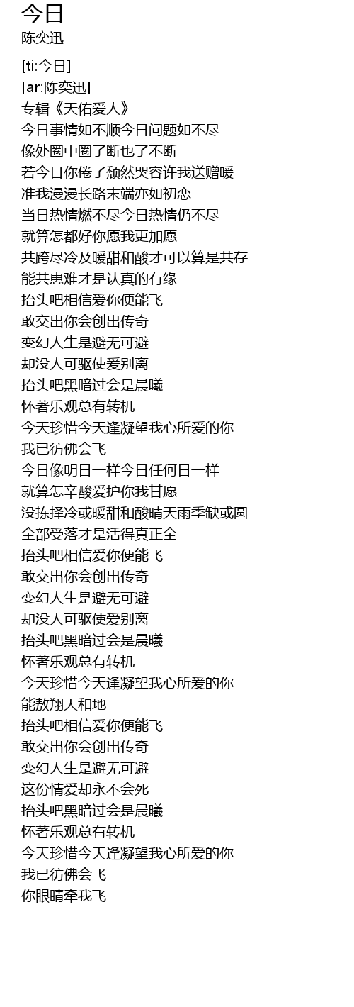 | [02:31.655] | 抬头吧相信爱你便能飞 |