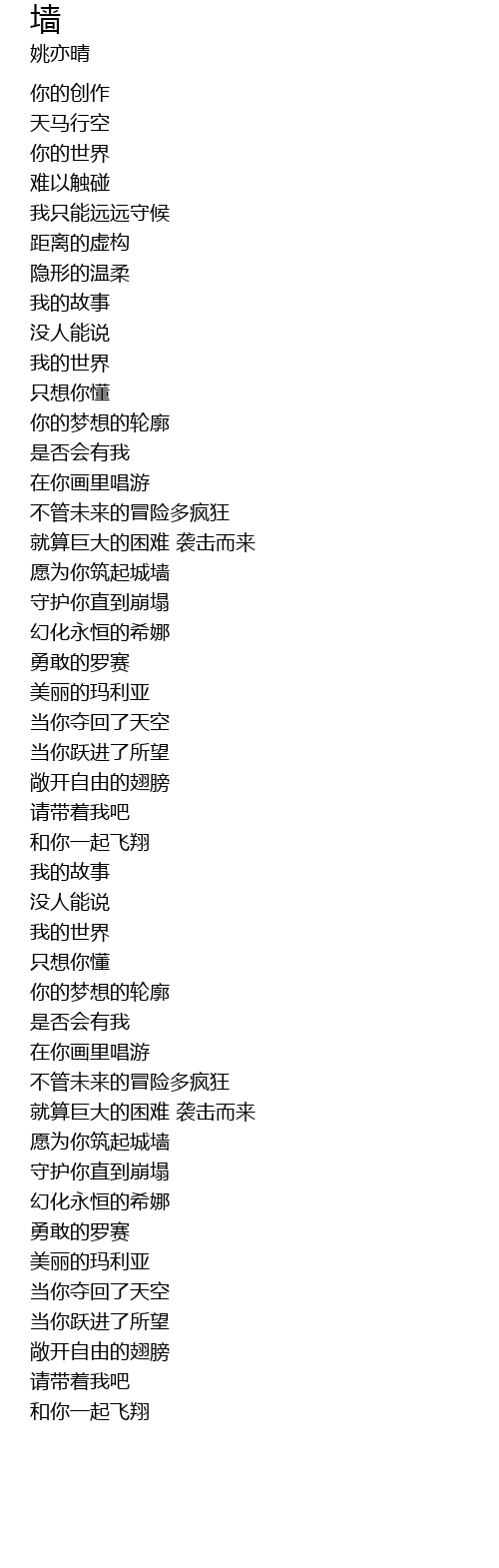 | 歌曲 | 墙 |