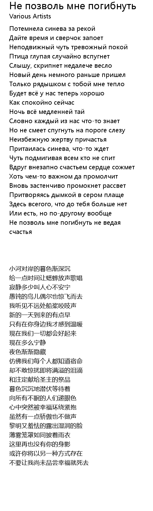 | 歌曲 | Не позволь мне погибнуть |