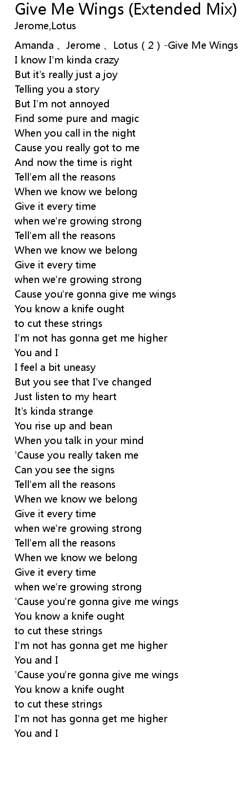 | [00:00.326] | Amanda Jerome Lotus 2 Give Me Wings |