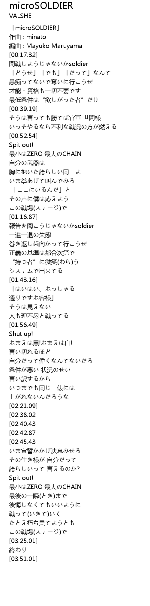 | [00:00.32] | 「microSOLDIER」 |