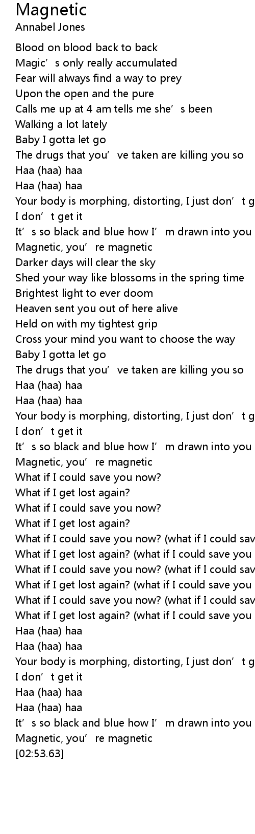 | [01:01.71] | Magnetic, you' re magnetic |