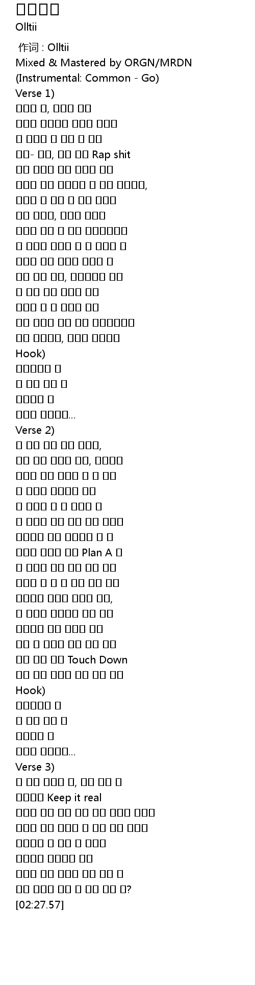 | [00:25.58] | 가끔- 대신, 이젠 매일 Rap shit |