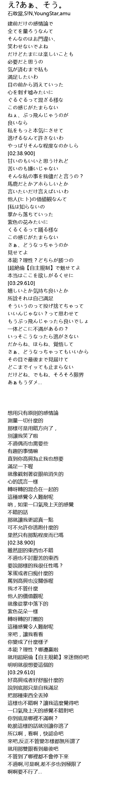 | [03:47.360] | 嬉しいとか気持ち良いとか |