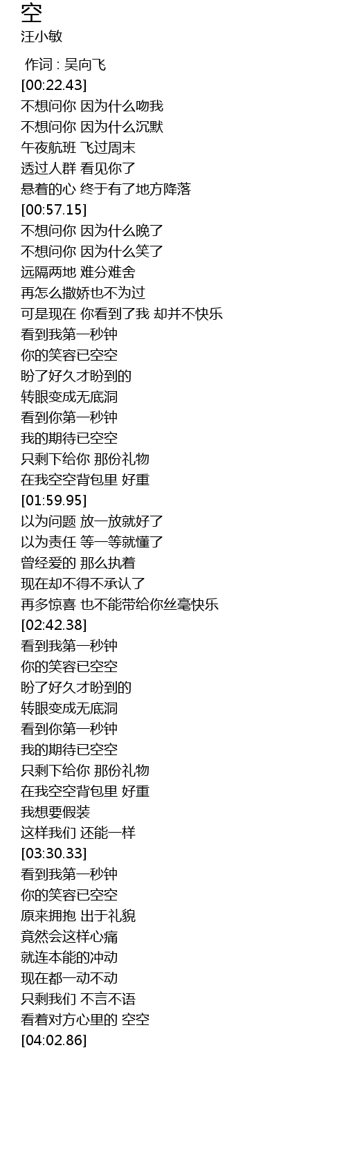 | [03:00.98] | wo de qi dai yi kong kong |