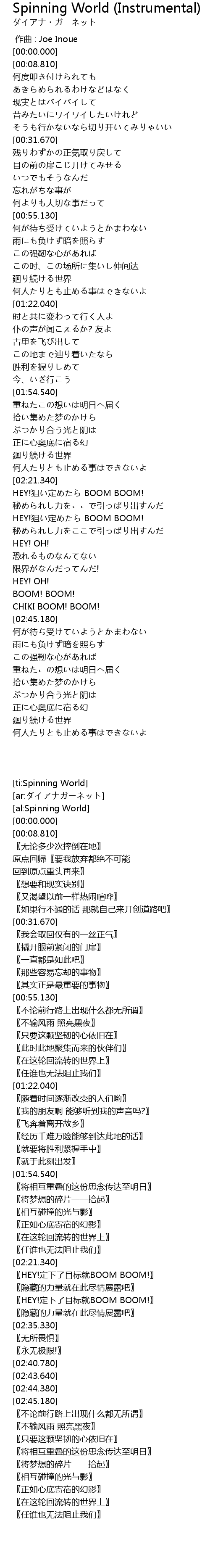 | 歌曲 | Spinning World (Instrumental) |