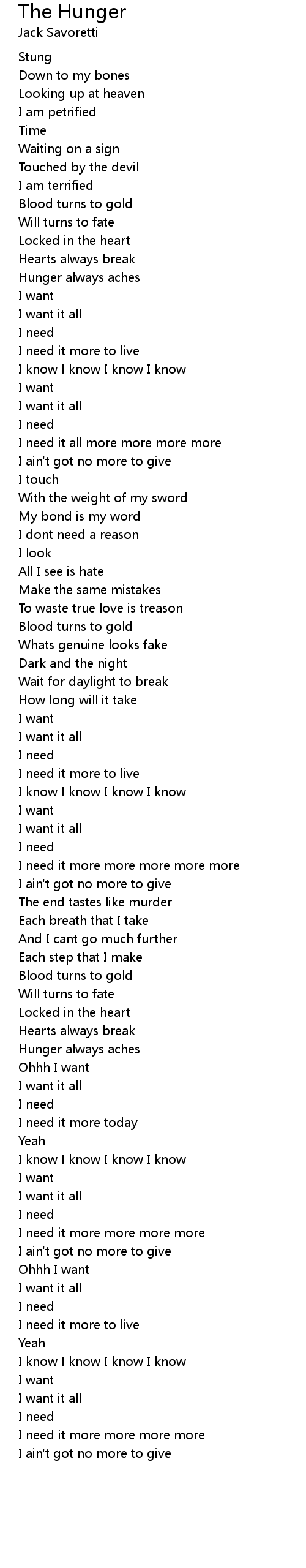 The Hunger 歌词