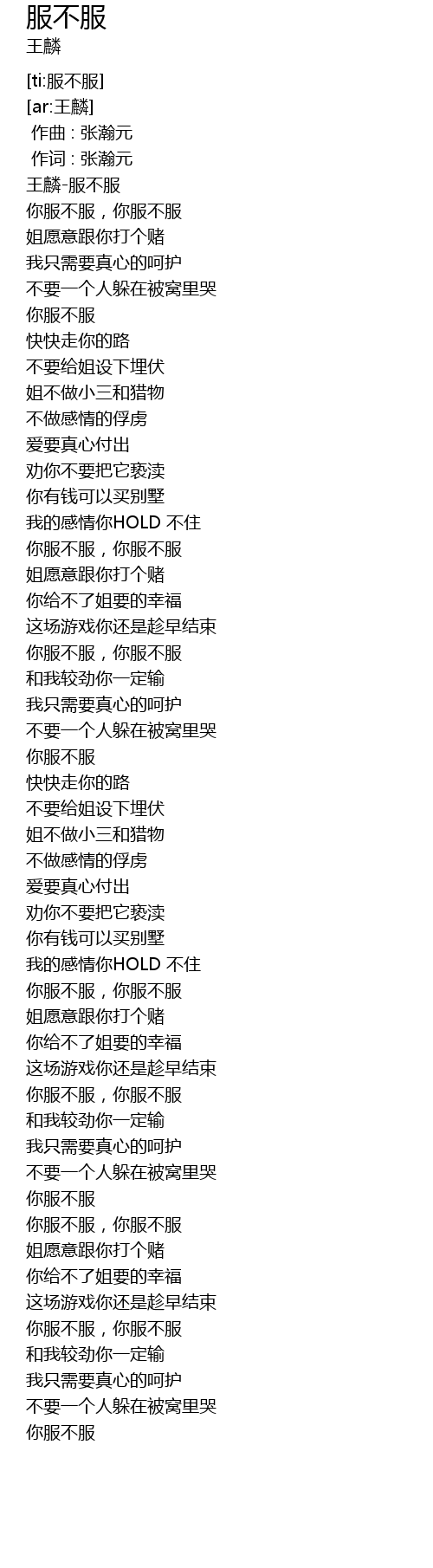 | [00:20.136] | nǐ fú bù fú, nǐ fú bù fú |