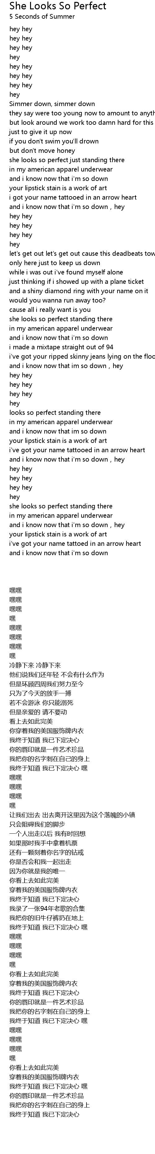 | 歌曲 | She Looks So Perfect |