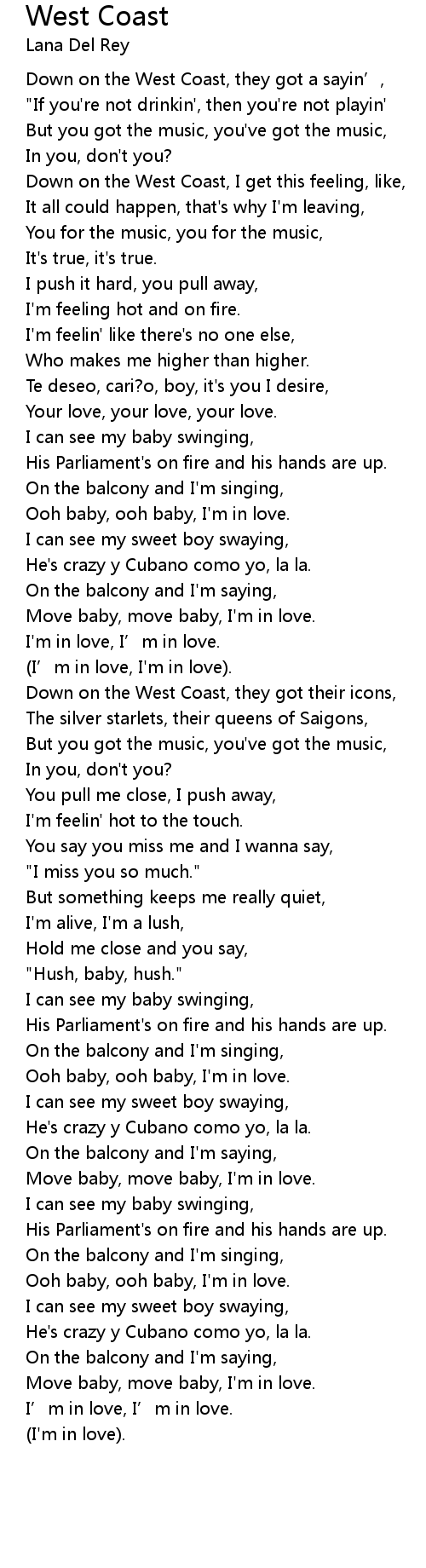 | [00:23.44] | Down on the West Coast, I get this feeling, like, |