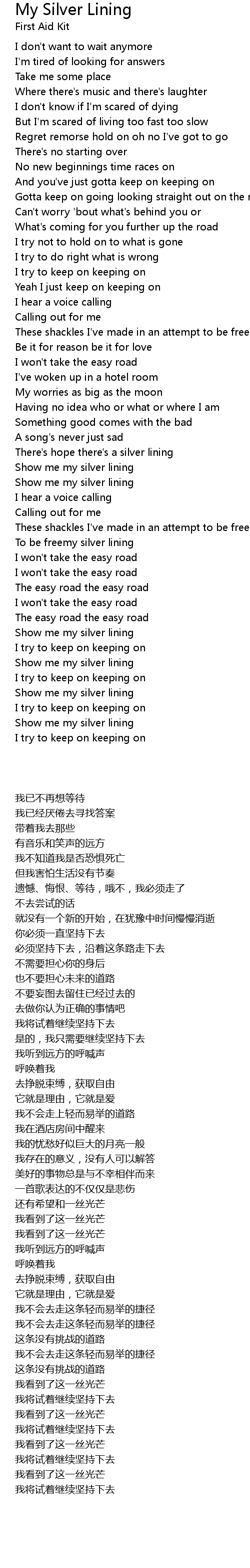 Show me my silver lining |