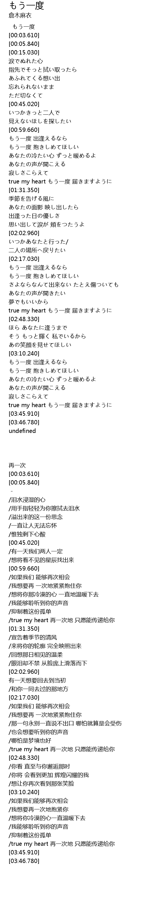 | [03:35.140] | /true my heart 再一次地 只愿能传递给你 |