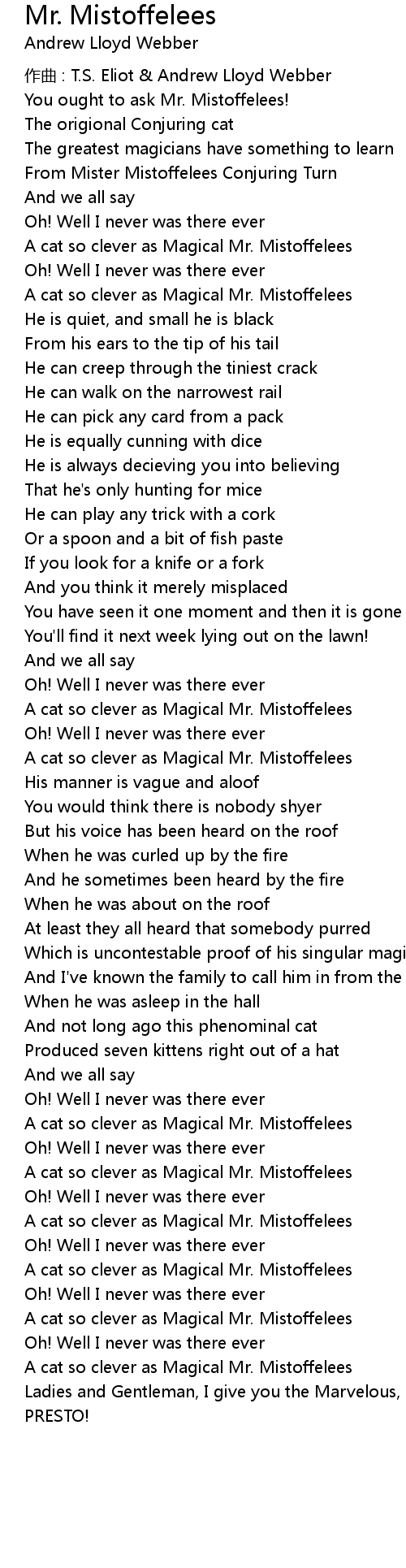 | 歌曲 | Mr. Mistoffelees |