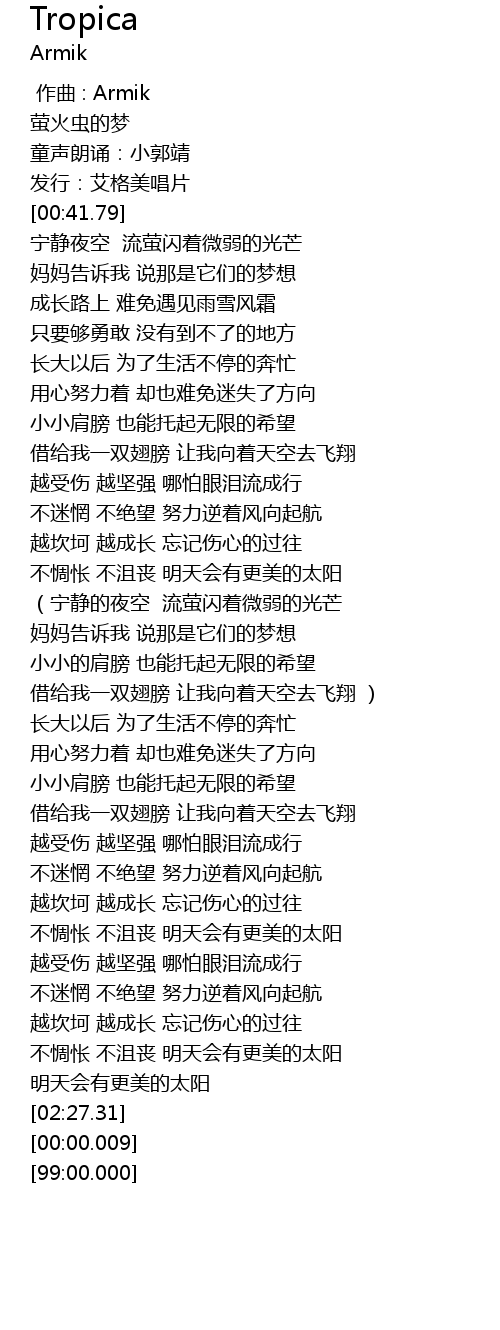| [00:42.14] | 宁静夜空 流萤闪着微弱的光芒 |