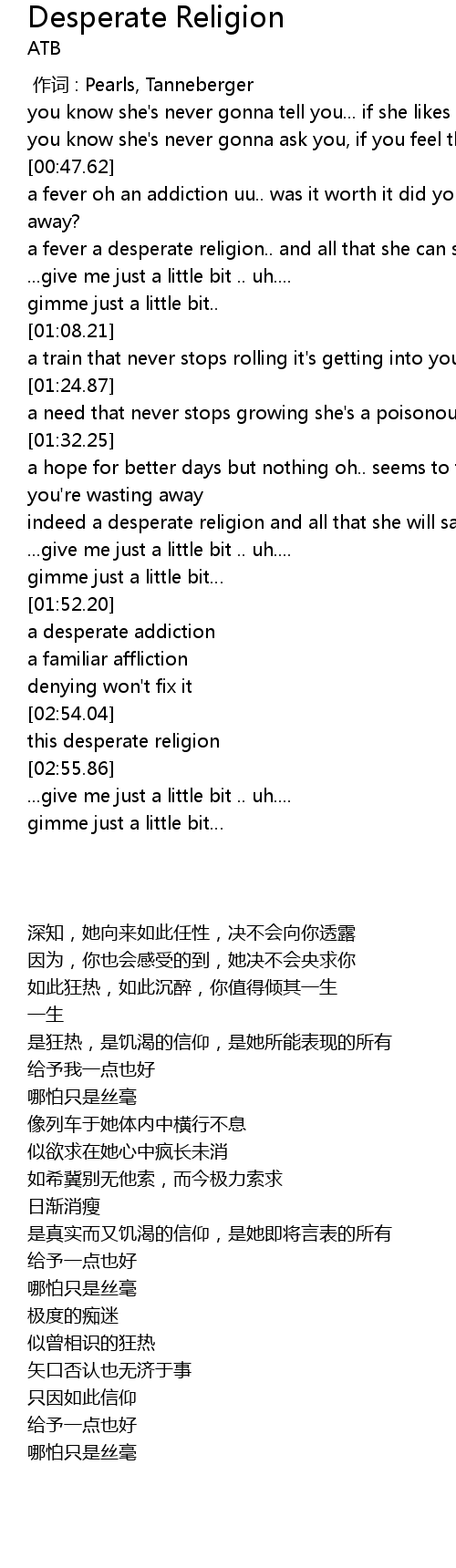 | [00:55.92] | a fever a desperate religion.. and all that she can say.... is |