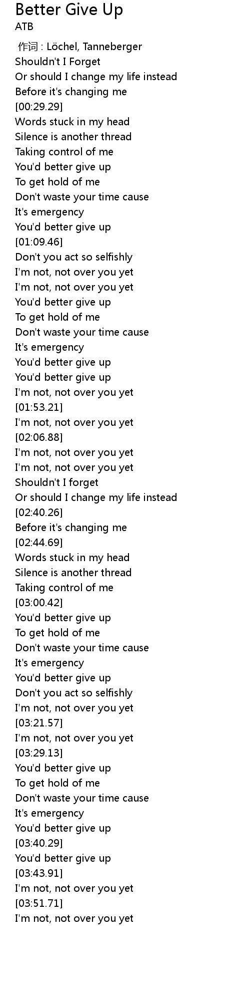 | [01:38.36] | You'd better give up |