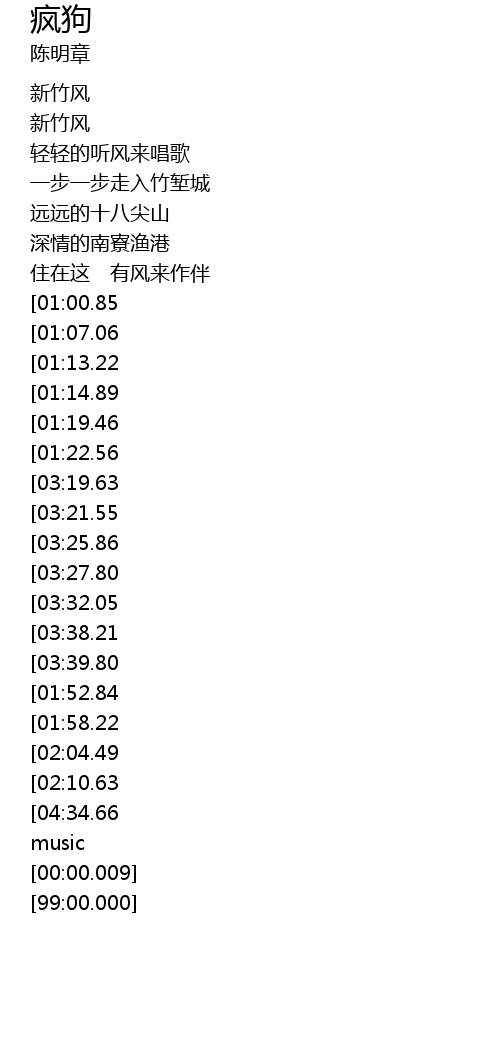 | [04:05.74][03:39.80][01:47.43] | 一阵阵的新竹风 |