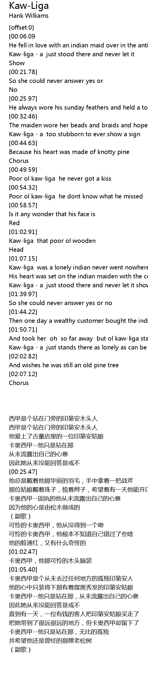 Kaw-liga was a lonely indian never went nowhere |