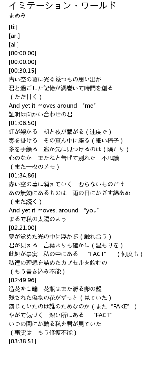 | [03:22.65] | やがて気づく 深い所にある “FACT” |