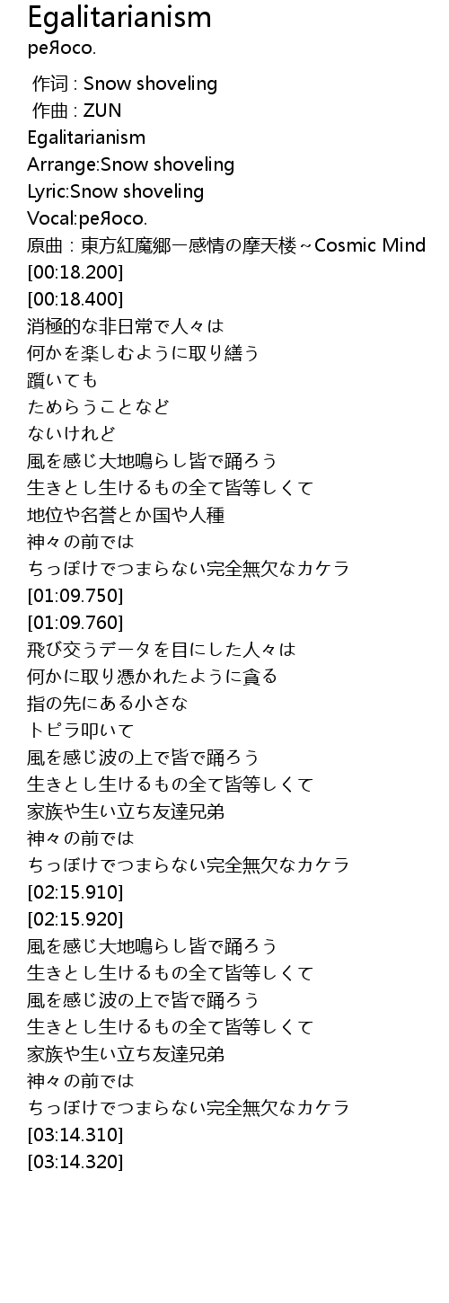 | [03:06.740] | ちっぼけでつまらない完全無欠なカケラ |