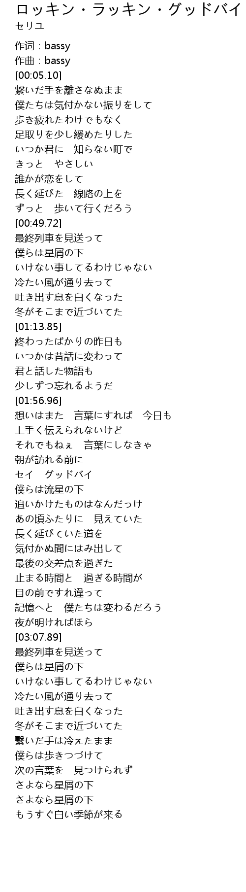 | [04:02.46] | さよなら星屑の下 |