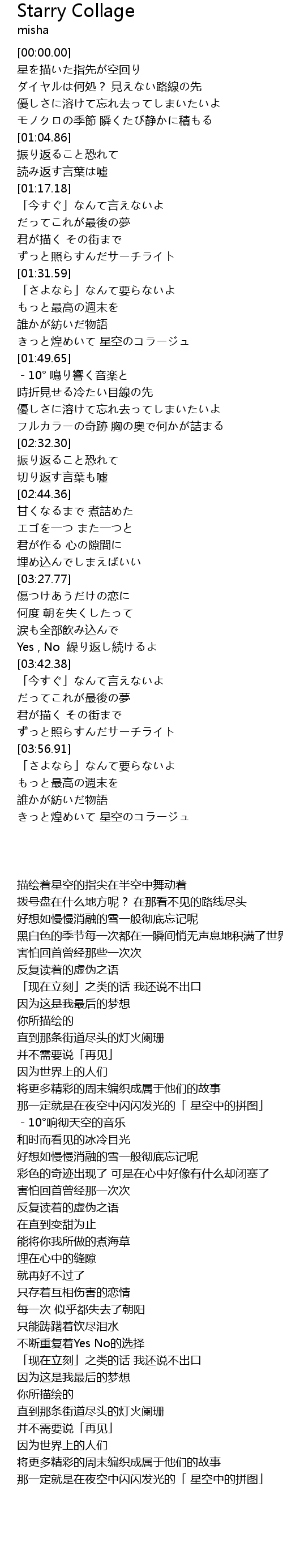 | [01:42.18] | きっと煌めいて 星空のコラージュ |