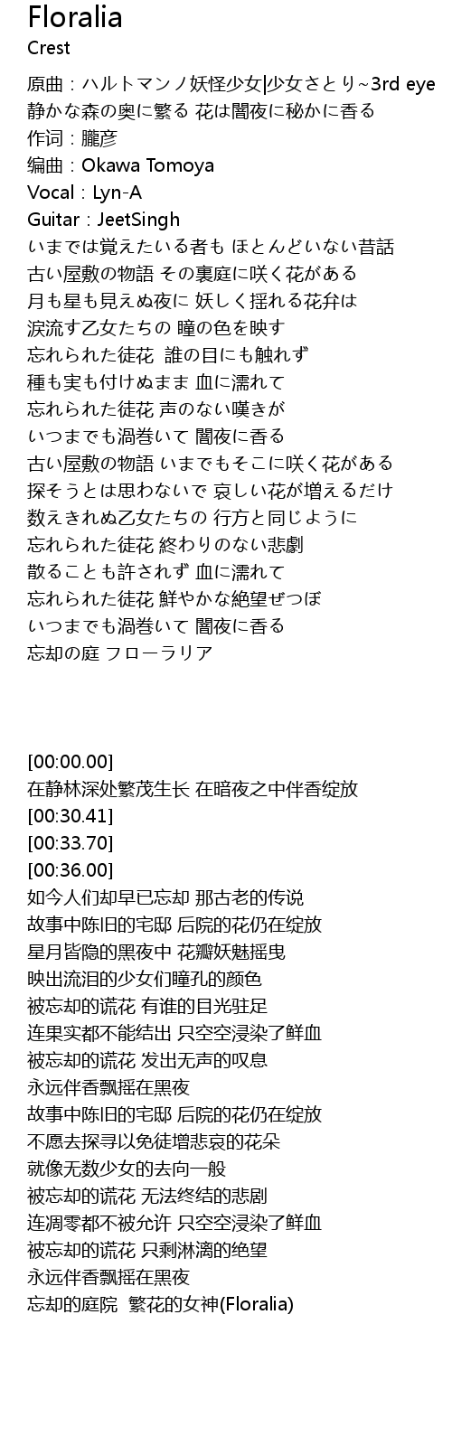| [03:23.62] | 忘却的庭院 繁花的女神(Floralia) |