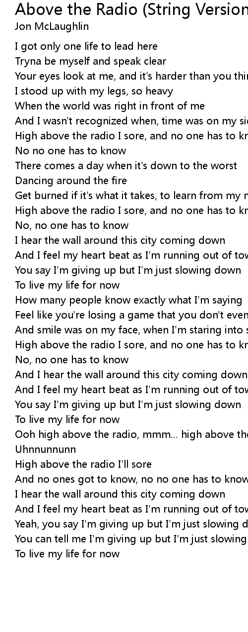 Above the Radio (String Version) 歌词