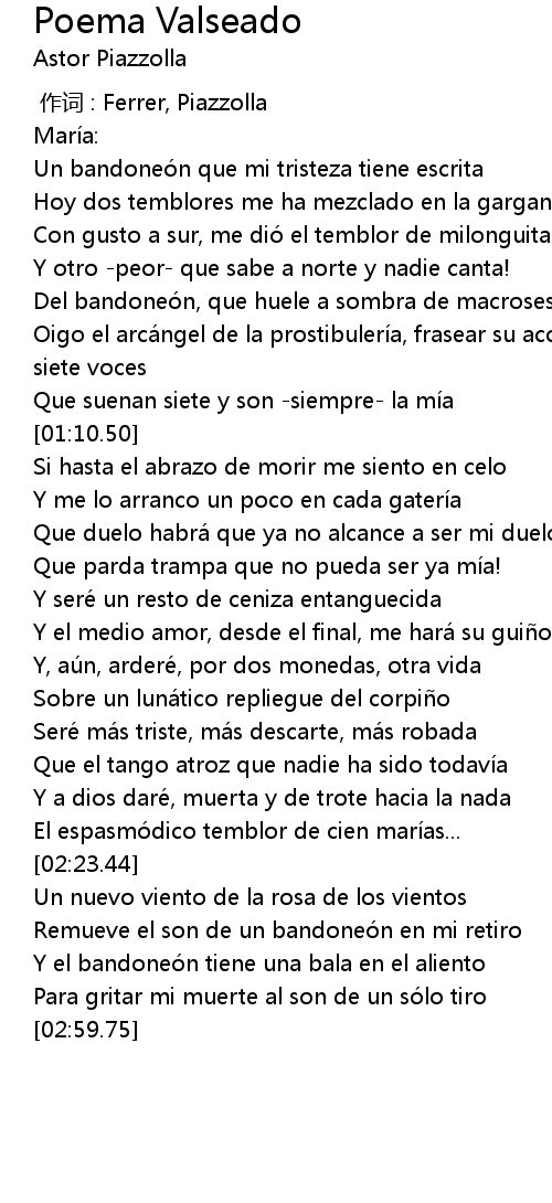 | [00:00.000] | 作词 : Ferrer, Piazzolla |