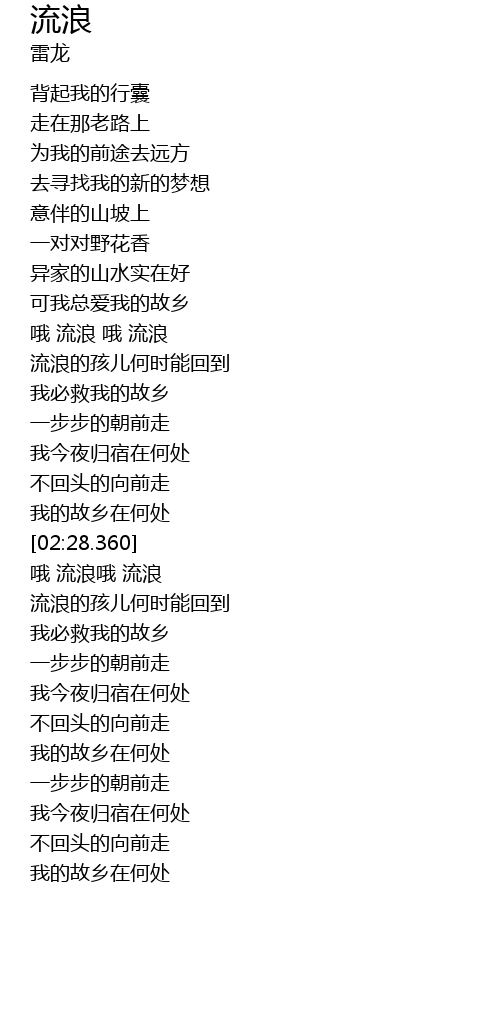 | [02:54.020] | 哦 流浪哦 流浪 |