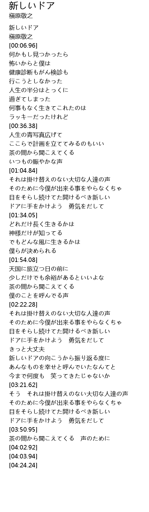 | [03:44.06] | ドアに手をかけよう 勇気をだして |