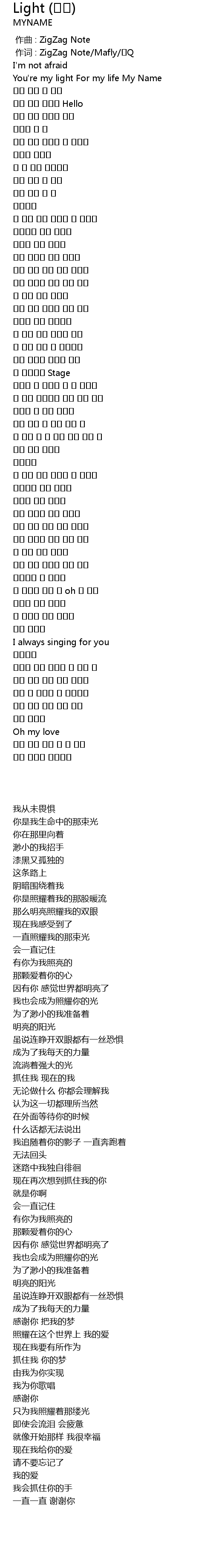 | [00:07.43] | You' re my light For my life My Name |