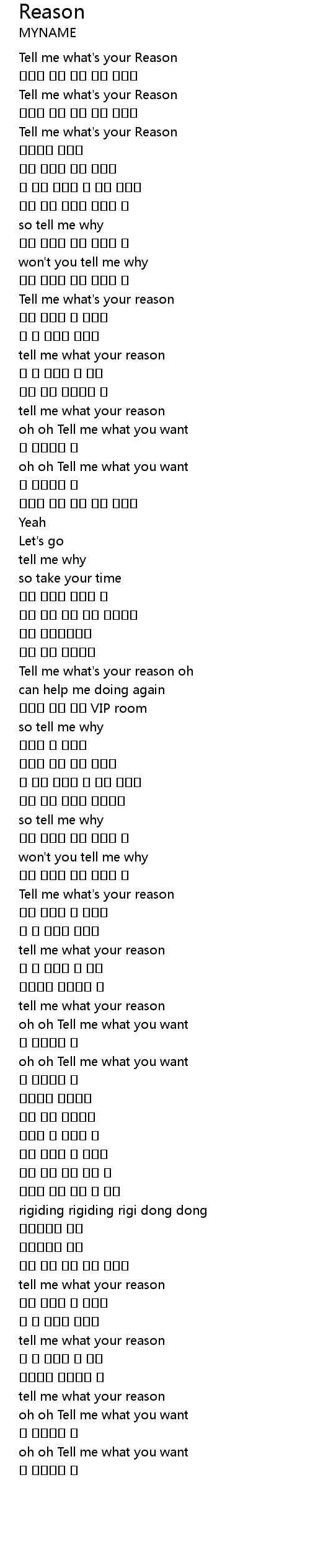 | [00:02.33] | Tell me what's your Reason |