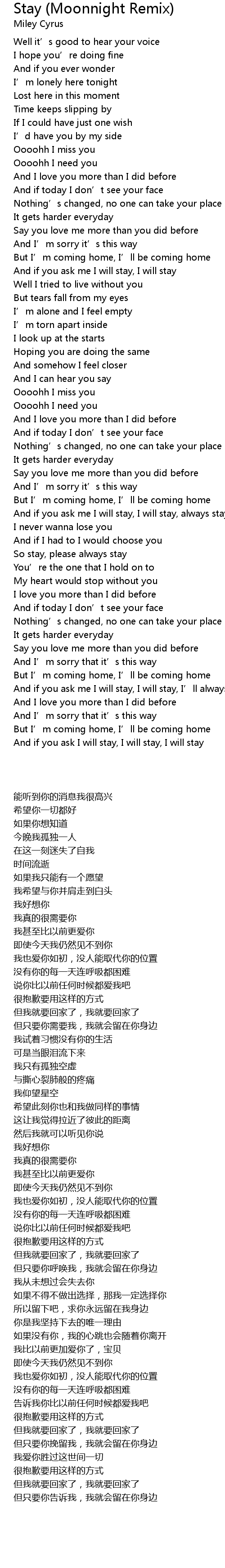 | 歌曲 | Stay (Moonnight Remix) |