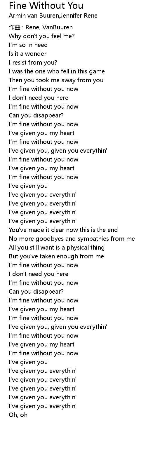 | I'm fine without you now | |