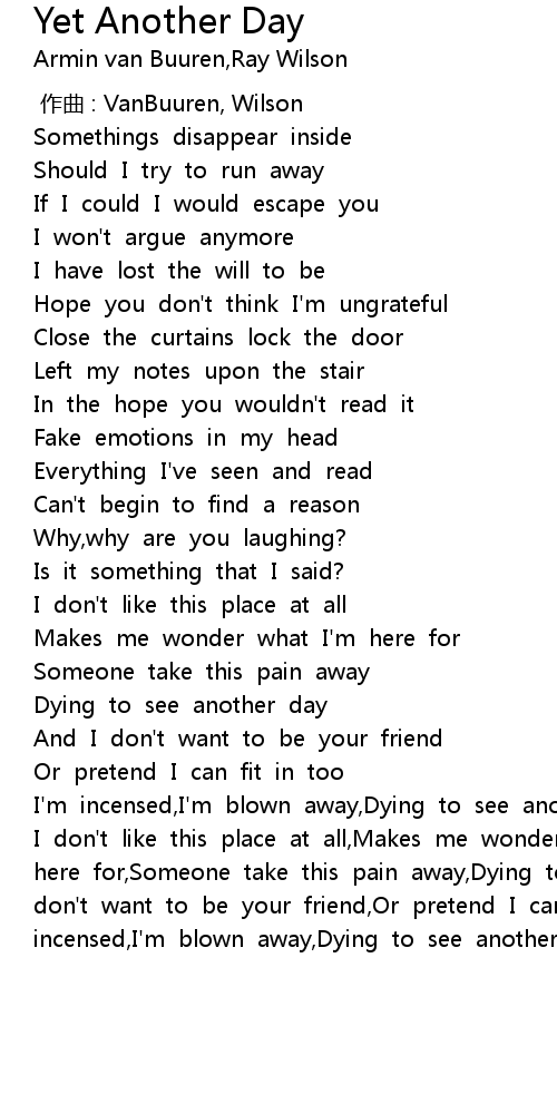 | 歌曲 | Yet Another Day |