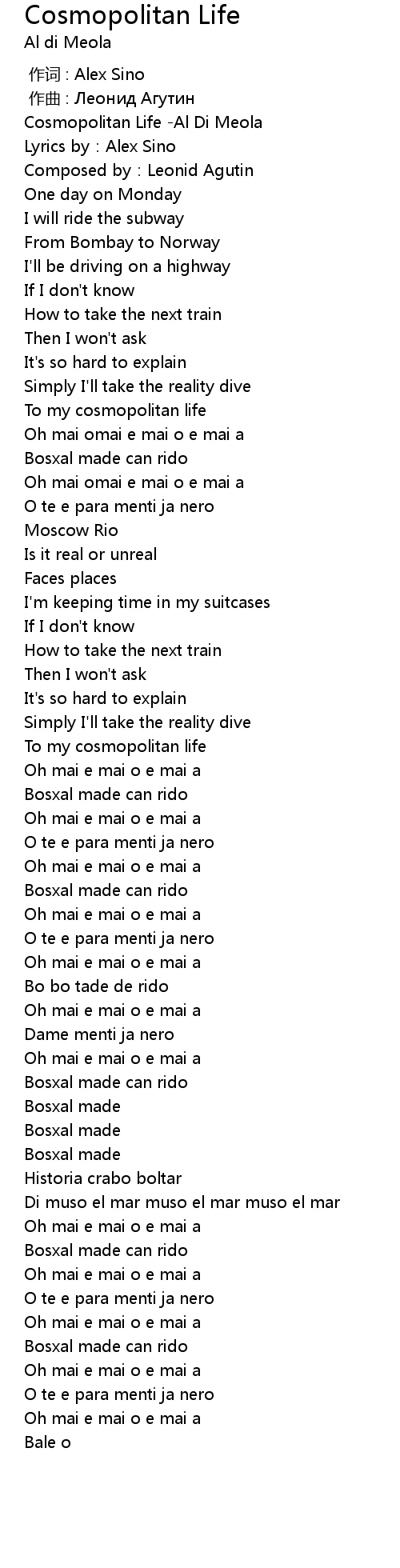 | [00:00.611] | Cosmopolitan Life Al Di Meola |
