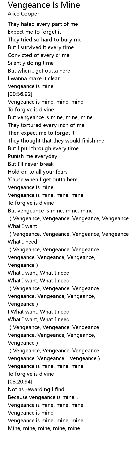 | [03:38.79] | Vengeance is mine, mine, mine |