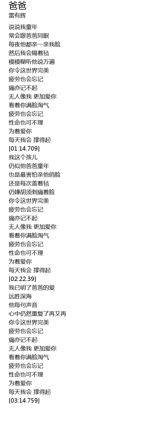 | [02:22.988] | 我已明了爸爸的爱 |