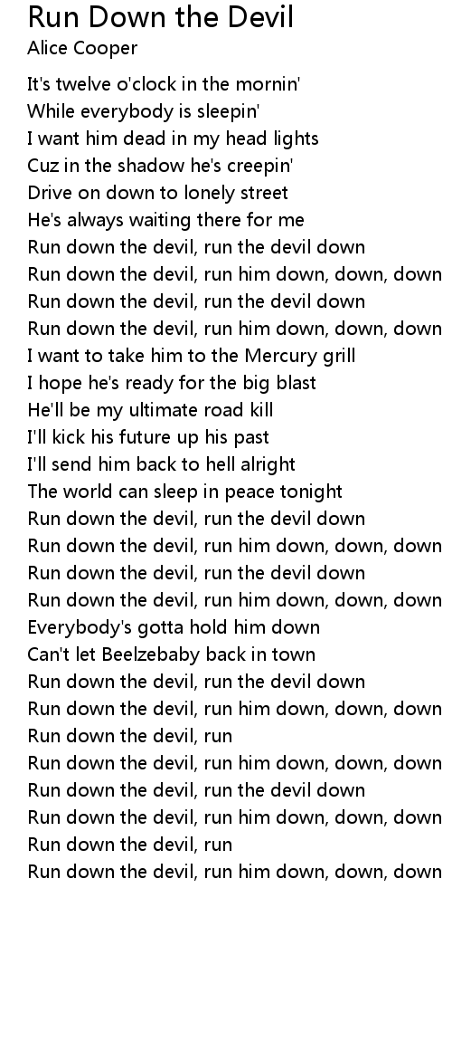 Run down the devil, run him down, down, down |