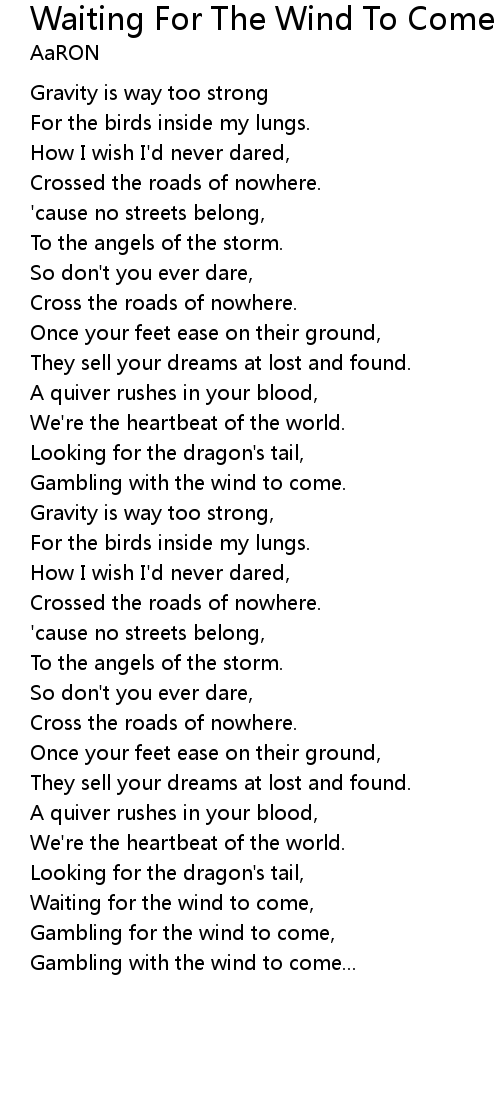 Waiting for the wind to come, |