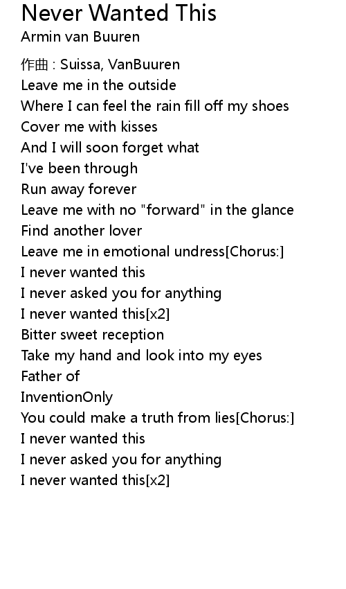 | 歌曲 | Never Wanted This |