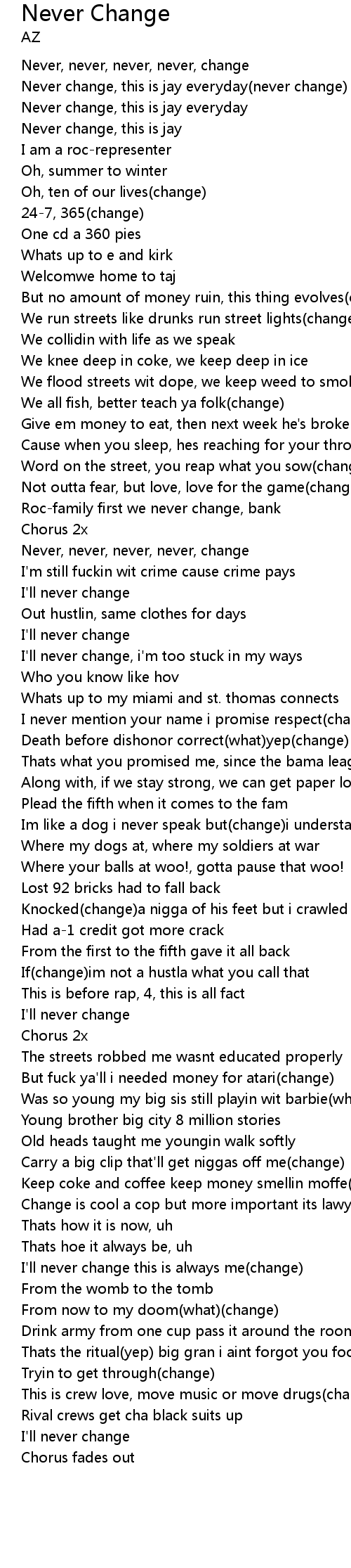 | Never, never, never, never, change | |
