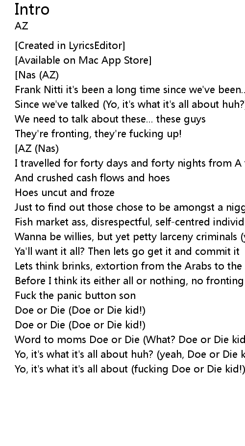 Yo, it's what it's all about (fucking Doe or Die kid!) |